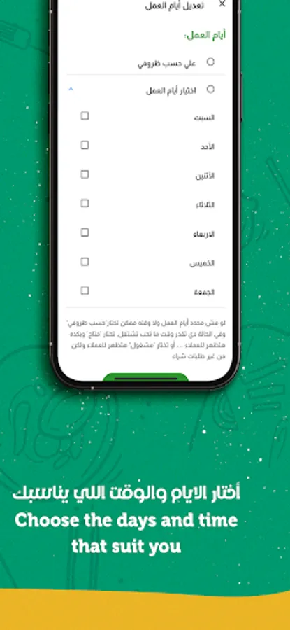 Prepare your menu, choose the area you can reach, set the work time yourself, and get ready to receive orders