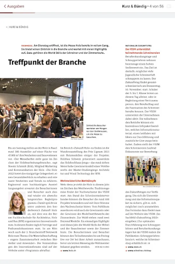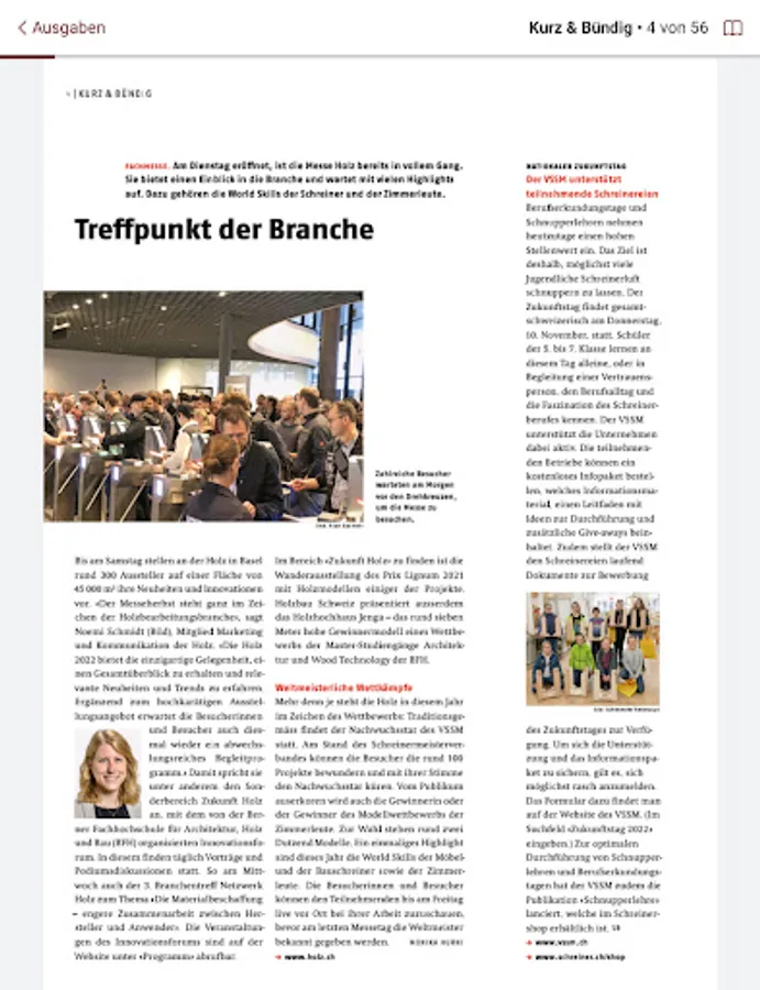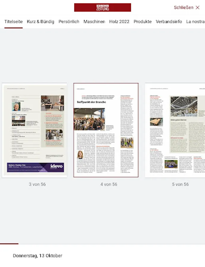 As a weekly journal Schreiner Zeitung points to any new developments in the industry. It also provides its readers with key information for professional life: Approximately information on suppliers and their products, important dates carpenter or a big job market.