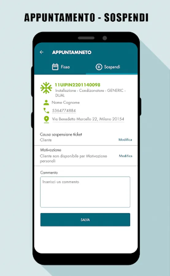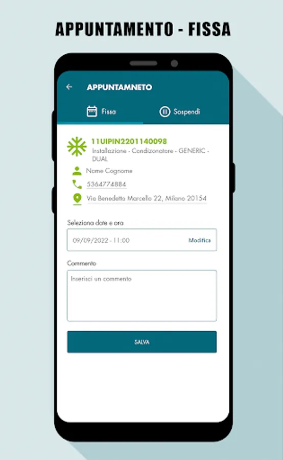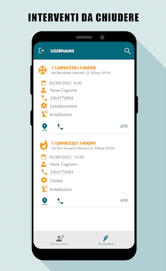 The application allows the installers of Covercare s.r.l. to update the status of an installation practice. To obtain access, contact the Covercare staff.