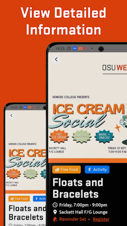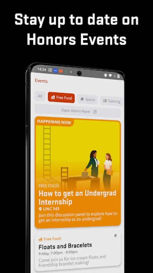The OSU Honors App keeps you updated on events in the honors and general Oregon State University community. You can stay on top of events by subscribing to topics you're interested in such as career development, sports or activities. We even included a free food category so you won't miss any free meals. If you'd like to go to an event, you can simply register with the tap of a button. We'll let the host know you're coming, and you can enable push notifications so you won't miss the event.