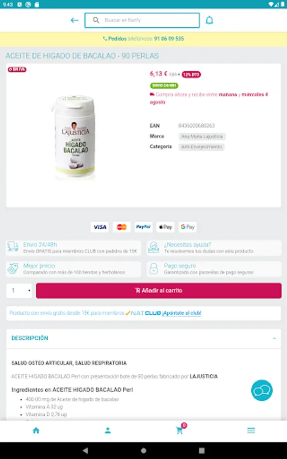 Also from the app you can make your registration, assign your address for shipments through our delivery system that has the option of 24 among others, while you can choose to join our natfy club as well as be aware of our promotions and discounts month to month. We have a world of options for you at your fingertips!