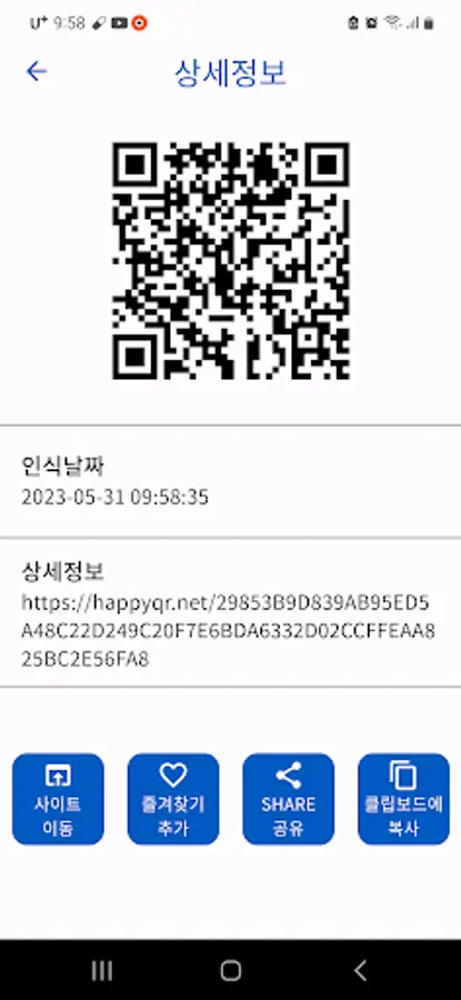 3. Scan the QR code and the detailed information screen will appear. At the bottom, there are functions to move site, add to favorites, share SHARE, and copy to clipboard.