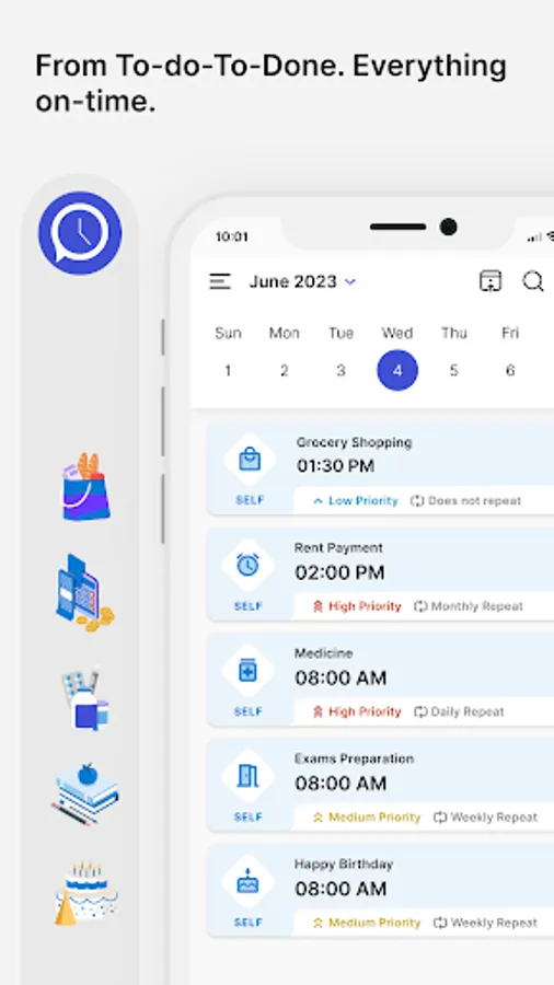 Just set reminders either daily, weekly or monthly and never worry about your Phone Bills, Credit Card bills, Monthly Rents, Investments, Collections from Clients.