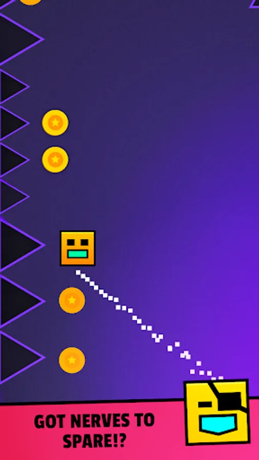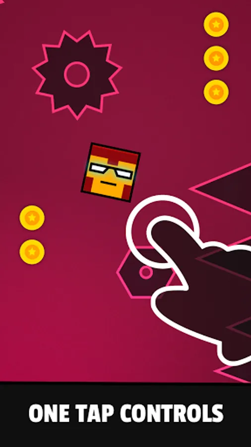 The controls in Geometry Clash Go! are as easy as a single tap, you need to tap to change the direction in which the character moves. Just collect the coins and avoid obstacles.