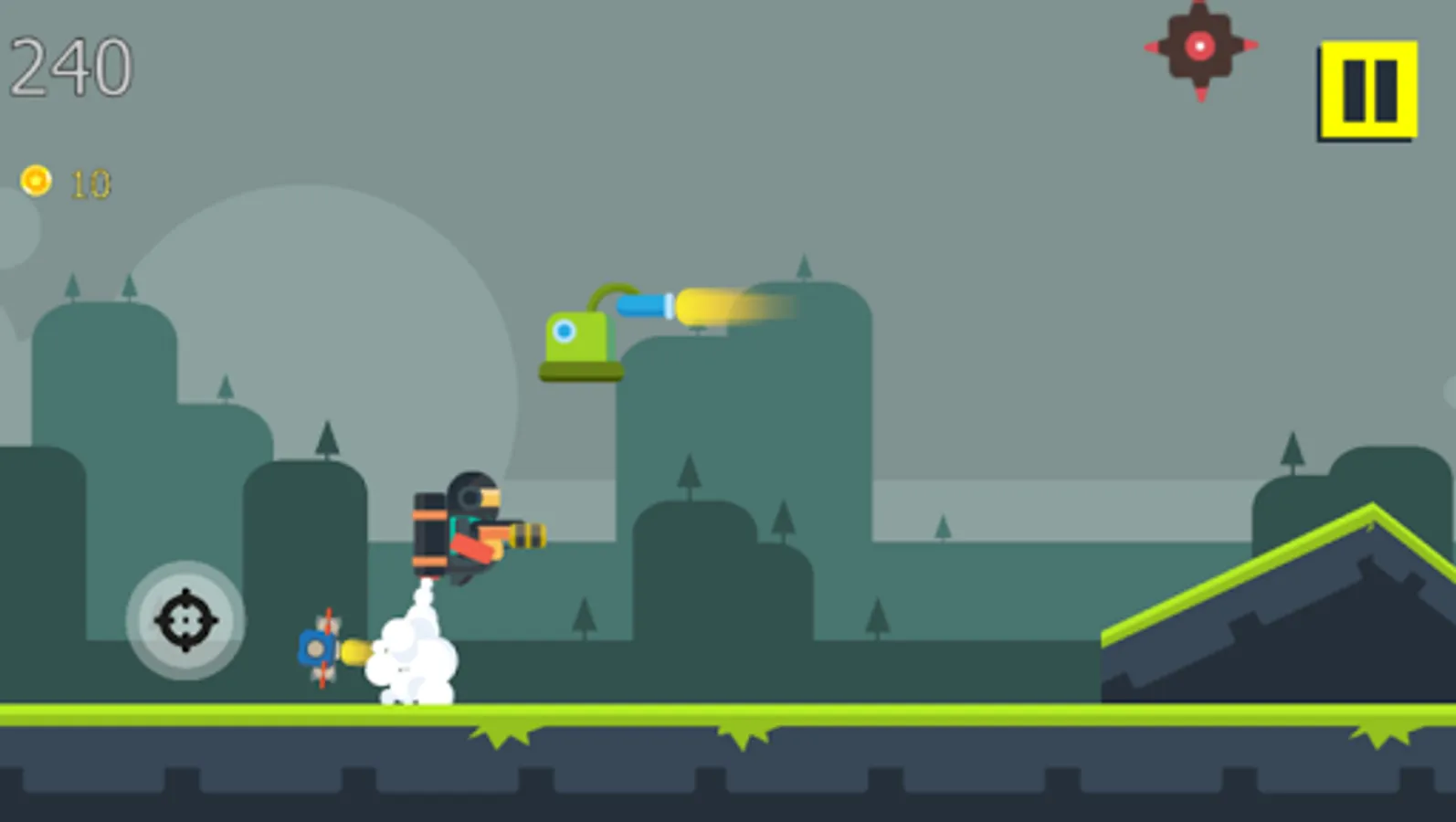 In the Jetpack Oppps game, the player will have to go through waves of enemies and obstacles, collecting as many coins as he can. In this endeavor the jetpack, packed with infinite fuel and a weapon will be of help. You can always fly past your enemies, but why? When you can destroy them with a well calculated shot.