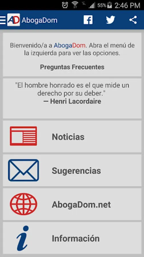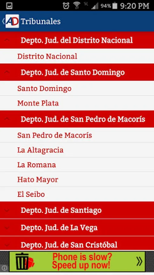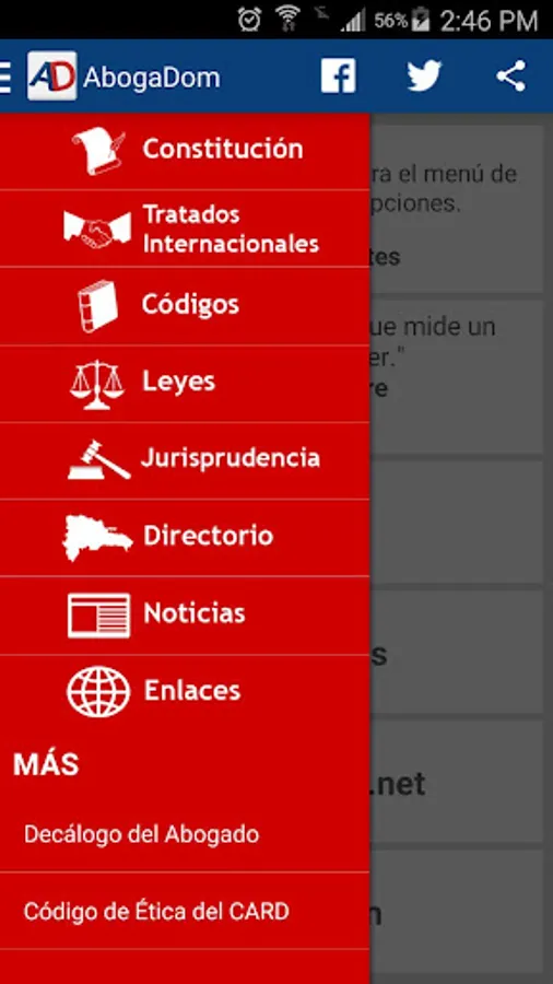 The application also has a directory in which information is relevant to the different institutions of the judiciary in all provinces, that is, courts, courts, courts, etc. It also contains a section of links to websites, and a section of news of interest to fans hander.