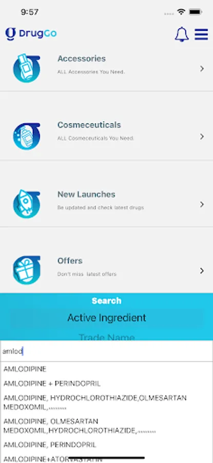 1. Drug Search: You can search the drug you want either by Trade name, The active ingredient, or indication for the complete prescribing and pricing information in detail.