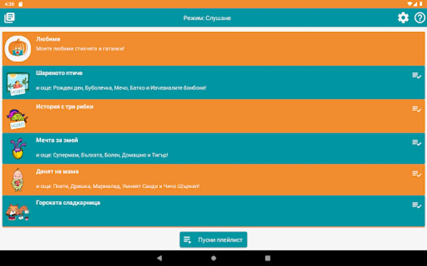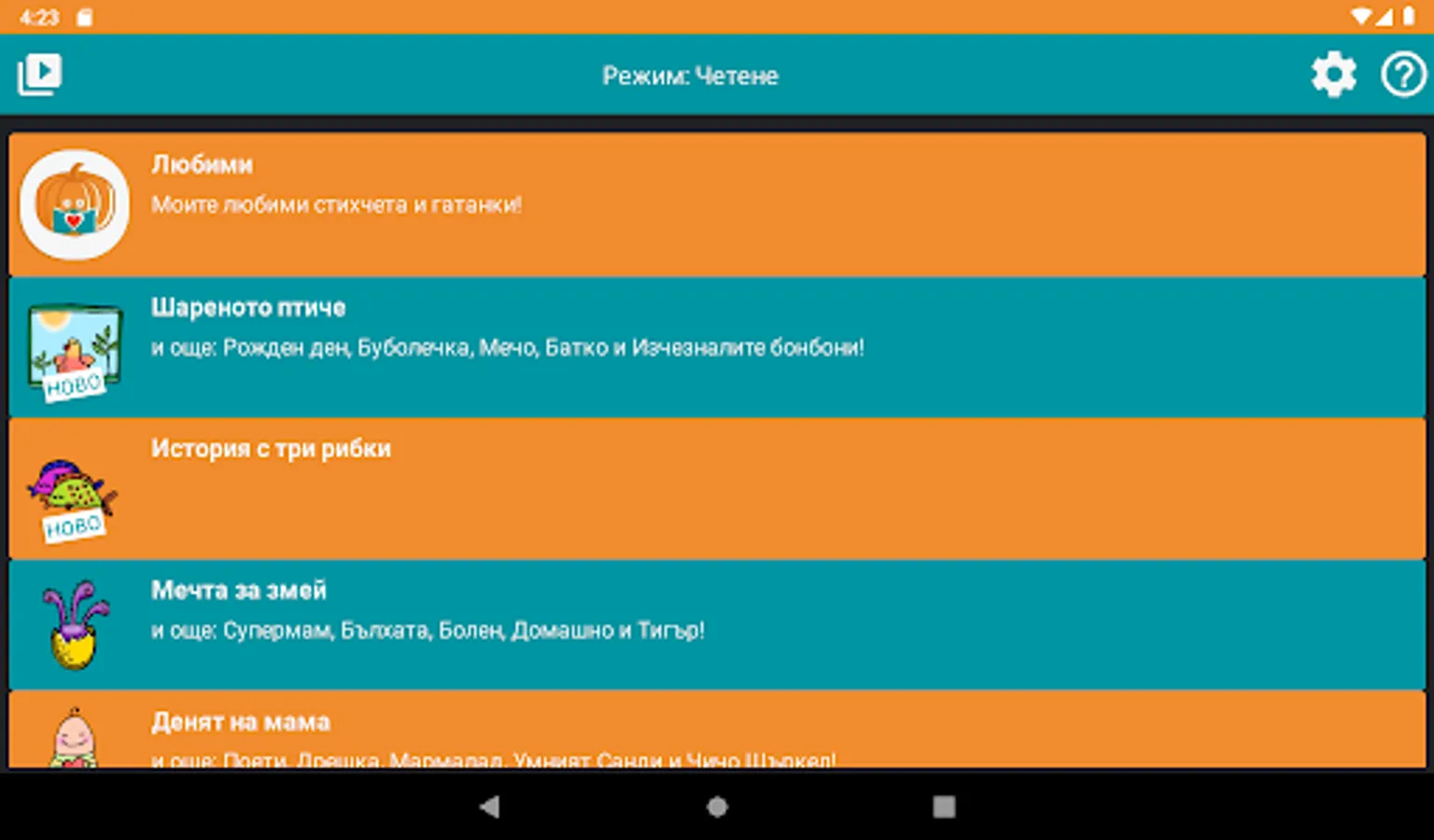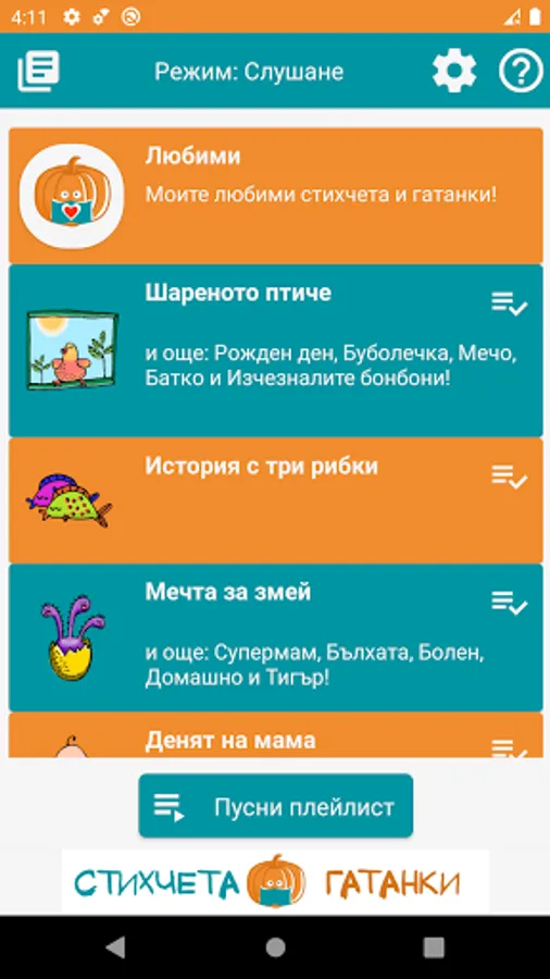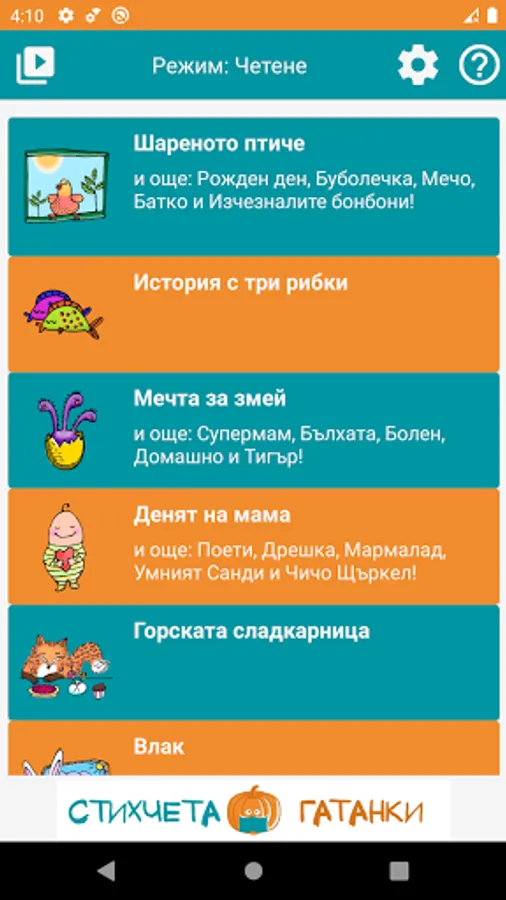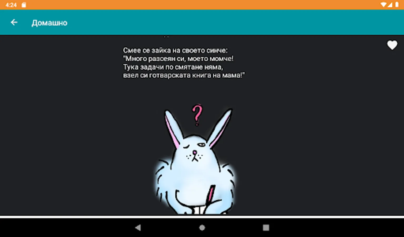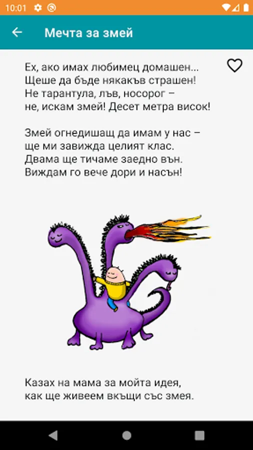 - Можете да добавяте своите най-харесвани стихотворения и гатанки в персонализирана книжка "Любими" за по-бърз достъп.