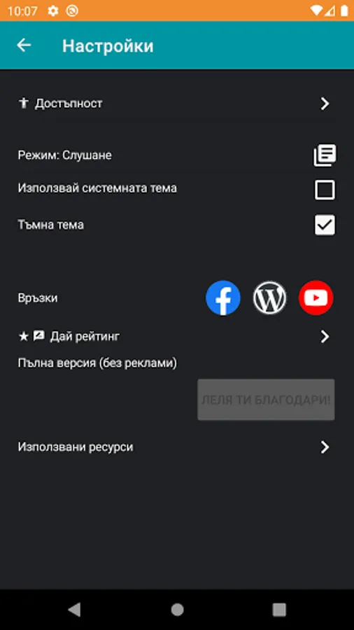 - Приложението се адаптира към темата на Вашето устройство или може да избирате между светла и тъмна тема. Можете да регулирате тези настройки от Главен екран -> Настройки.