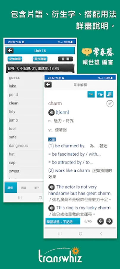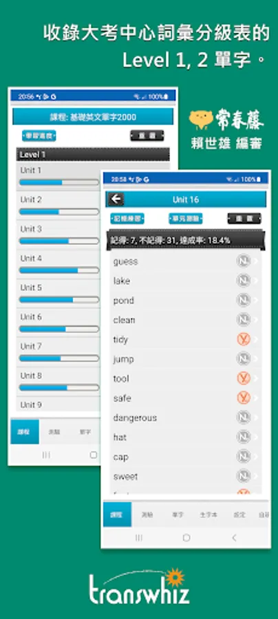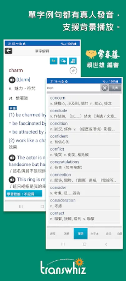 The content of this series of app courses is re-edited based on the "High School English Reference Glossary" issued by the University Entrance Examination Center in July 2019. The original words are considered according to the user's cultural background, daily language, and high-frequency words at the teaching level, and the word frequency is removed. Low-level, colloquial vocabulary, some abbreviations and proper nouns, etc., the words are sorted according to the frequency of use, and the important words that are necessary for learning and various exams are added. In addition to self-study, it is also suitable for academic tests, high school English listening tests, and national exams. Examinations such as the primary level of British inspection, the new system of TOEIC popularization... and so on. The included word explanations are detailed and rich in content, including phrases, derivative words, homonyms/antonyms, easily confused words, and collocation usage, etc. The words and example sentences also have authentic American pronunciation.