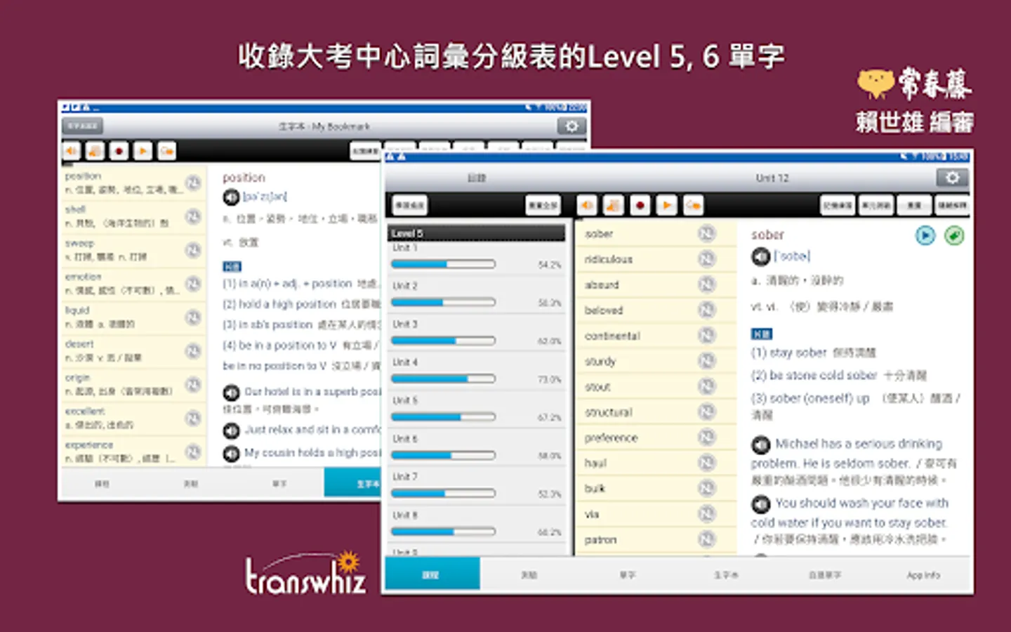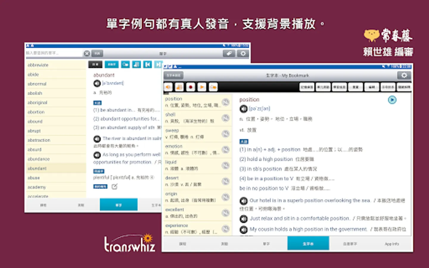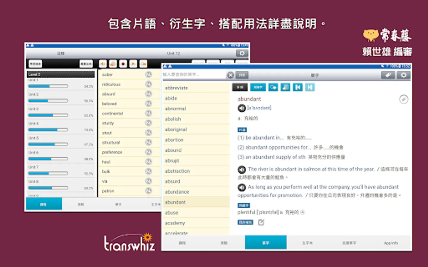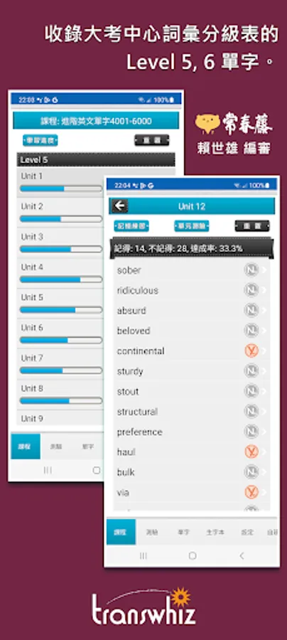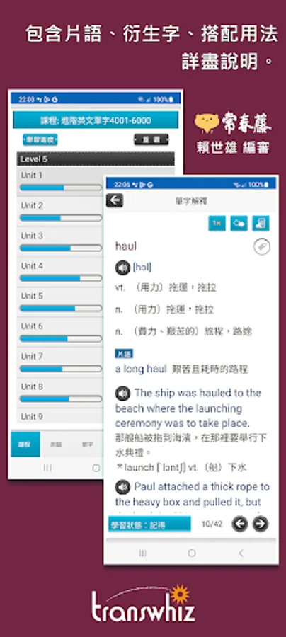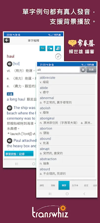 The content of this series of app courses is re-edited based on the "High School English Reference Glossary" issued by the University Entrance Examination Center in July 2019. The original words are considered according to the user's cultural background, daily language, and high-frequency words at the teaching level, and the word frequency is removed. Low-level, colloquial vocabulary, some abbreviations and proper nouns, etc., the words are sorted according to the frequency of use, and the important words that are necessary for learning and various exams are added. In addition to self-study, it is also suitable for academic tests, high school English listening tests, and national exams. Examinations such as the primary level of British inspection, the new system of TOEIC popularization... and so on. The included word explanations are detailed and rich in content, including phrases, derivative words, homonyms/antonyms, easily confused words, and collocation usage, etc. The words and example sentences also have authentic American pronunciation.
