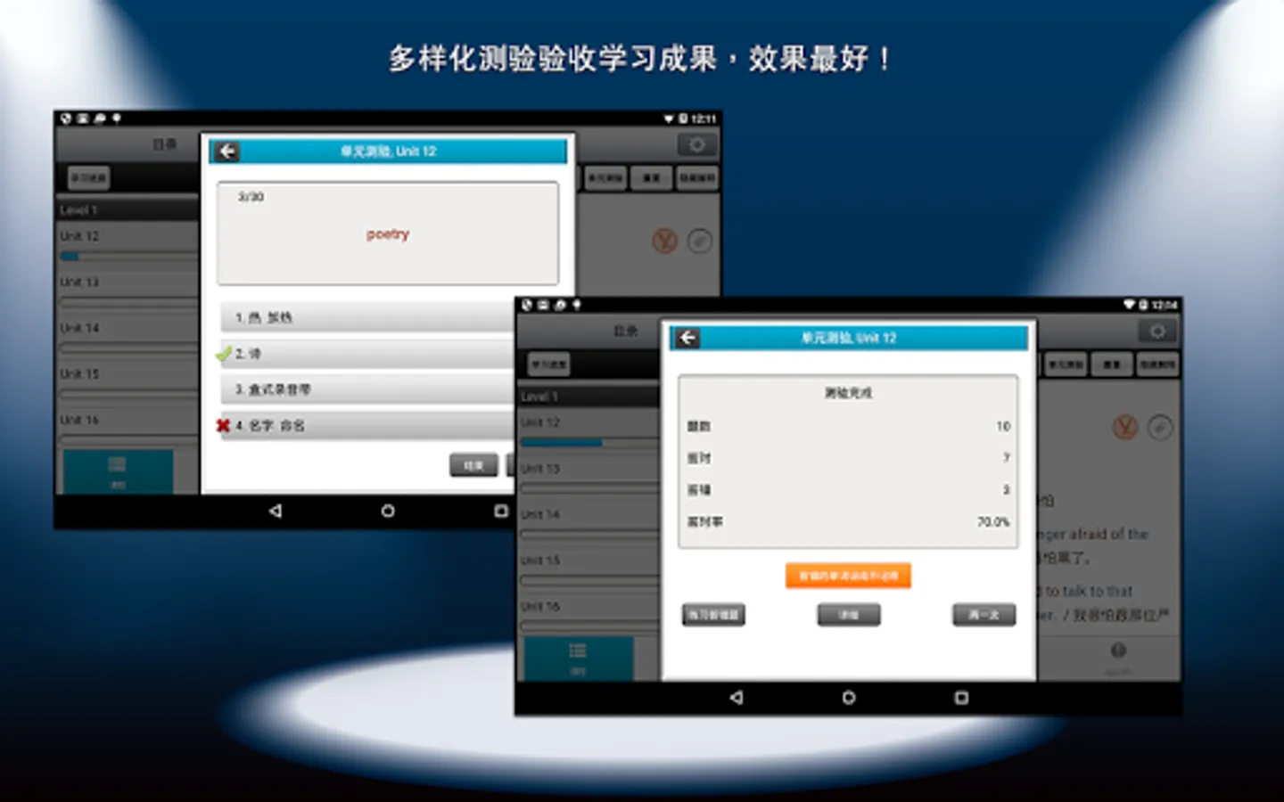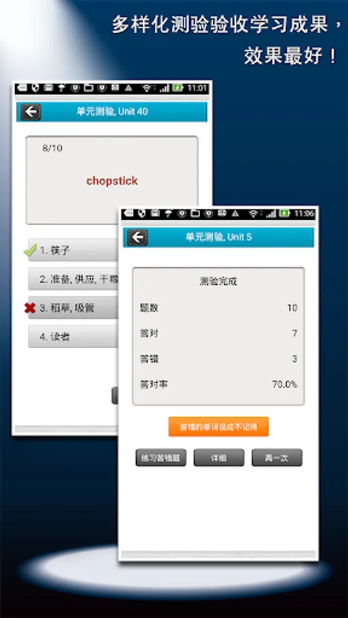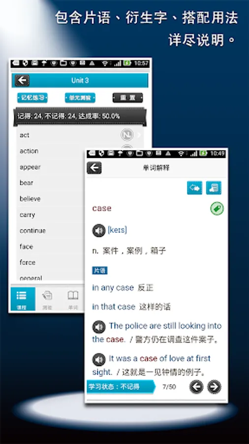 * 可将要加强的单词放入生词本,再特别加强记忆和练习。