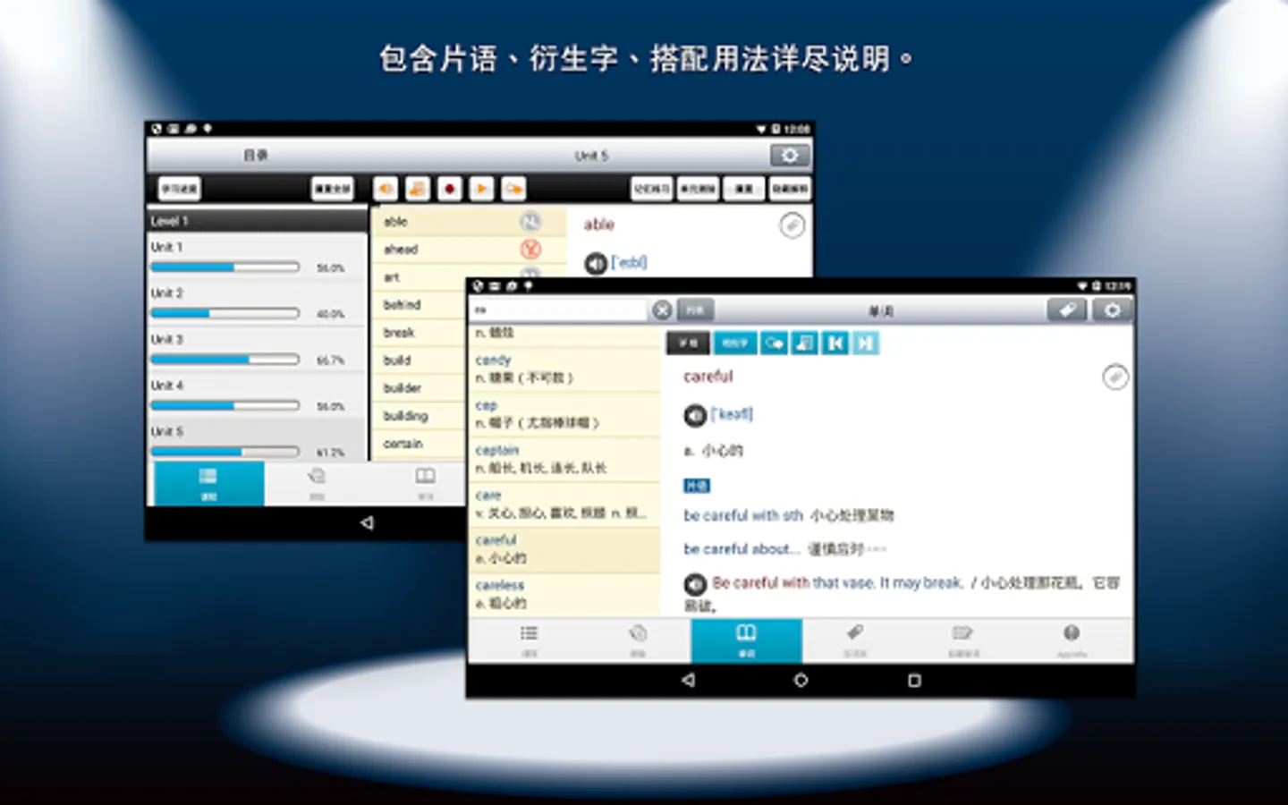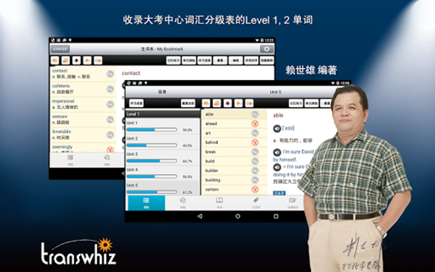 本应用课程内容依据大考中心颁布的《英文参考词汇分级表》,收录其中 Level 1 及 Level 2 的单词。课程内容秉持赖老师一贯严谨态度,单词解说详尽,内容丰富,包含片语、衍生字、同/反义字、容易混淆字、和搭配用法等说明,单词与例句也均有道地美式发音。