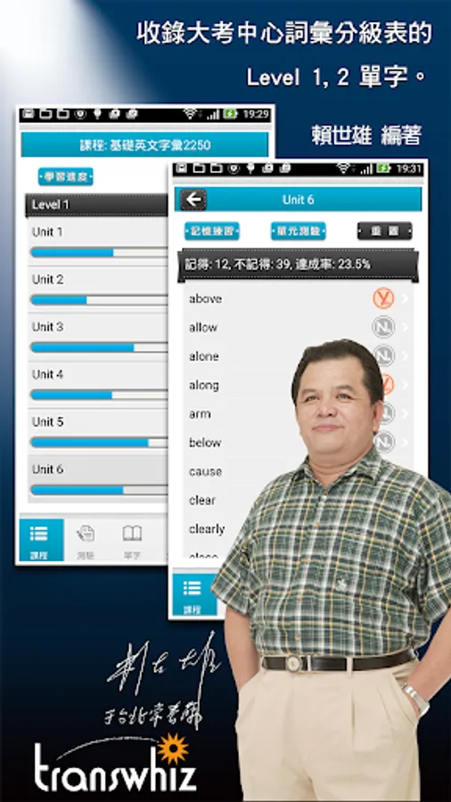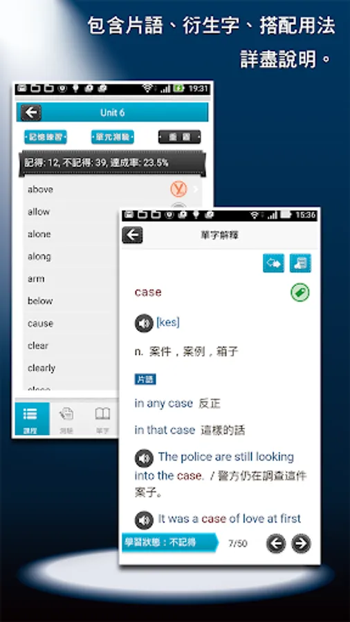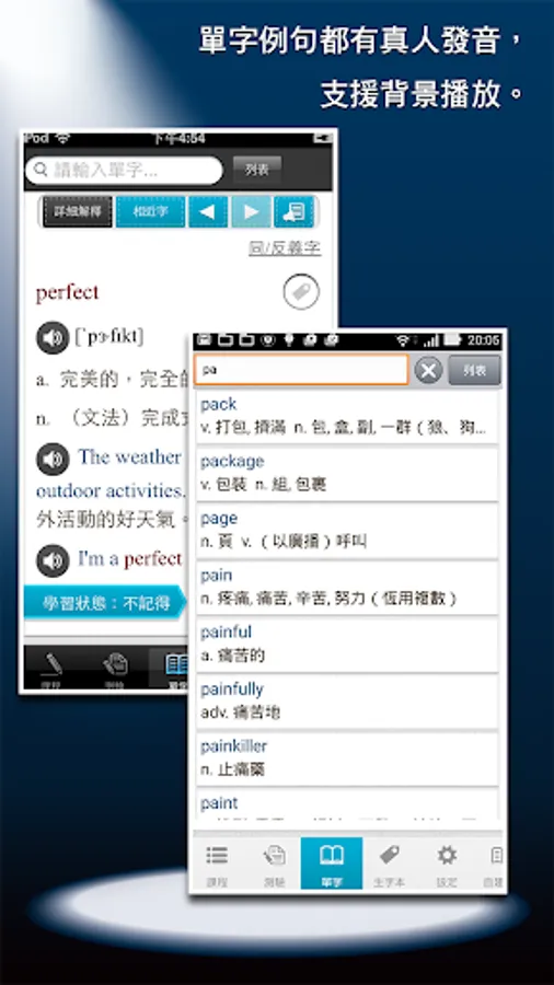 This app course contains more than 2,000 basic words commonly used in high school. The course content adheres to Mr. Lai's consistent rigorous attitude. The single-word explanations are detailed and rich in content, including descriptions of phrases, derived words, synonyms/antonyms, easily confused words, and collocations. The single words and example sentences also have authentic American pronunciation.