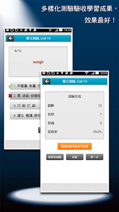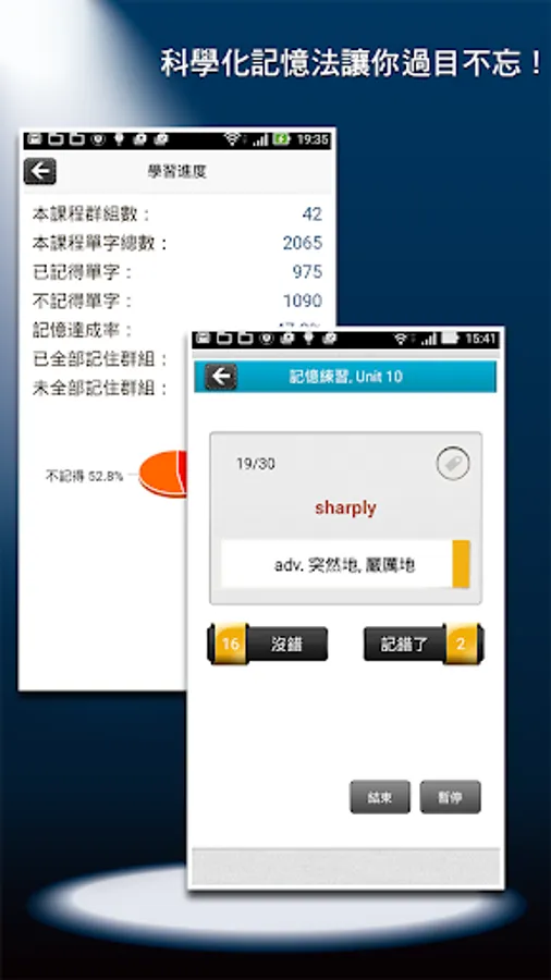 Memory exercises and quiz exercises specially designed to enhance learning, make your word memorization more efficient and easier! Support continuous playback and background playback functions, allowing you to effectively use the fragmented time to enhance your word skills.