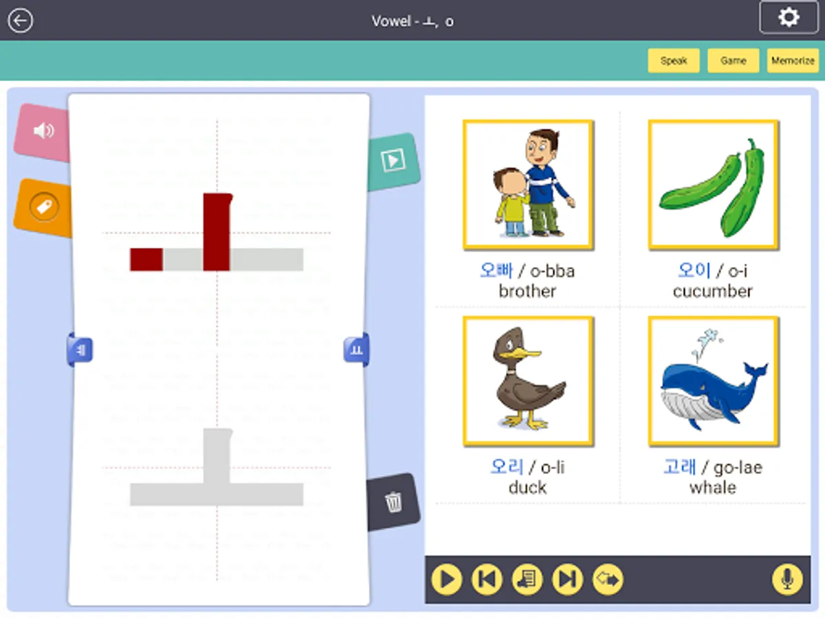* Original memorize formulas make you remember 40 Hangul form and its pronunciation quickly.