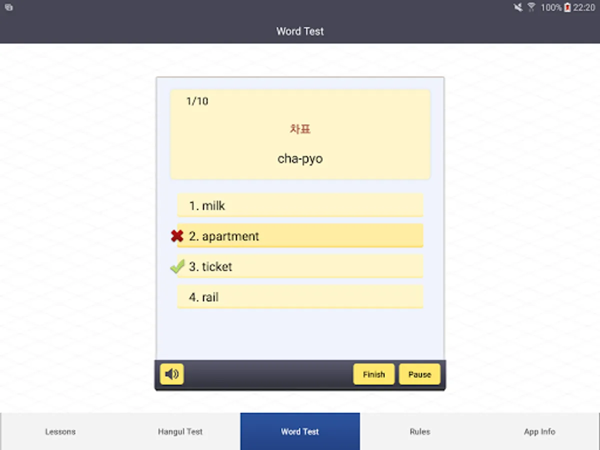 *Hangul exercises and word exercises help users remember Korean alphabet and know their learning achievement.