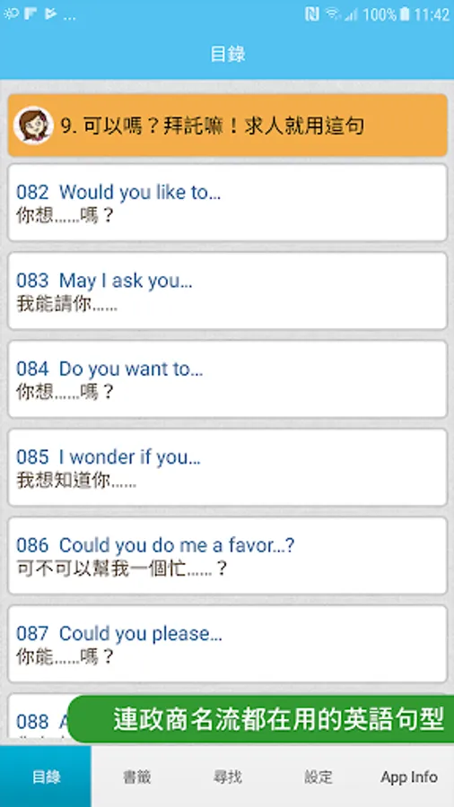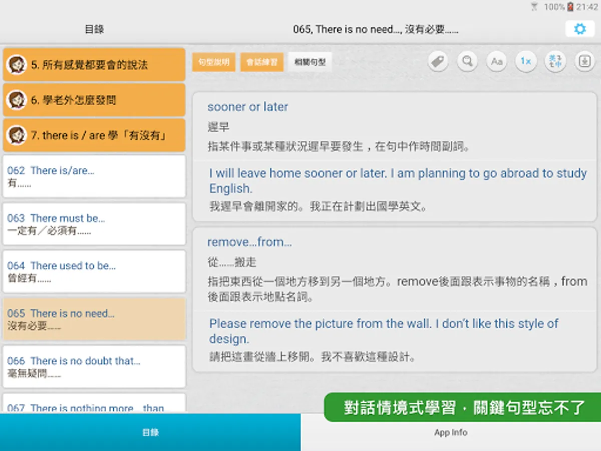 名師嚴選的好用句型,將英文句型分解念出,讓你不必看書也能學習萬用英語句型。並同時收錄全部例句和對話。邊聽邊學,大家都在用的那句話,你也能輕鬆開口說!