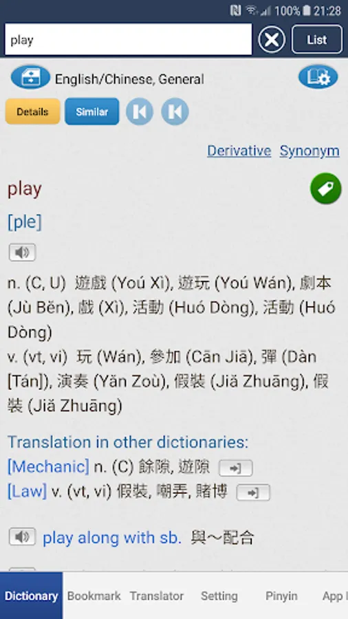 Display detailed definition, similar words … etc. for English and Chinese with a