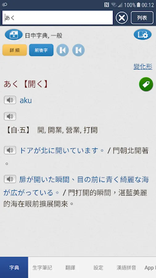 Translated Concise Japanese-Chinese Dictionary is a Japanese-Chinese bidirectional dictionary with rich content. In addition to general characters, it also contains a variety of commonly used professional dictionaries. The content of the dictionary includes descriptions of the inflection and transformation of words, and the content of the thesaurus is also updated regularly. There are more new words and foreign words than other dictionary software. It is an indispensable portable tool for your business applications, language learning, reading Japanese and traveling abroad.