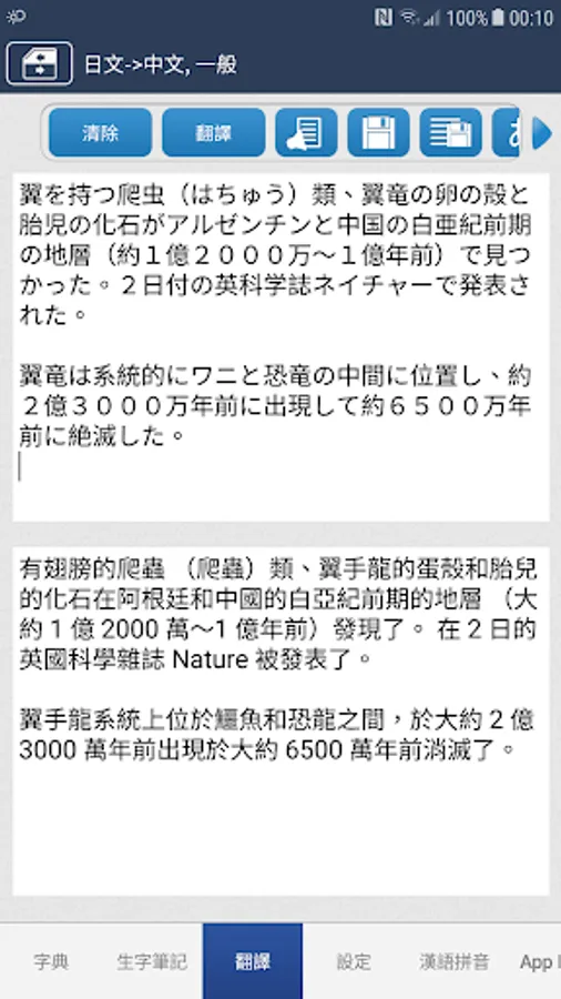 Query Japanese and Chinese dictionaries with rich content, containing 250,000 entries. In addition to detailed explanations and inflections of words, a list of preceding and following words is also displayed.