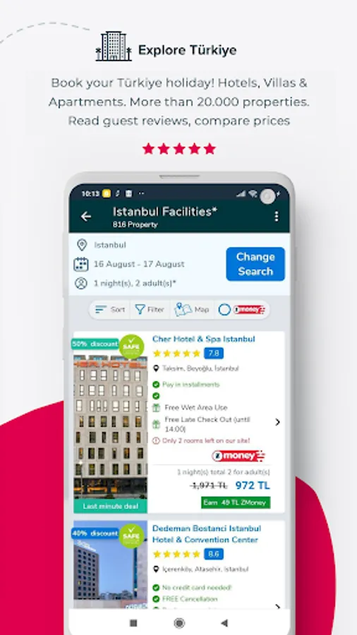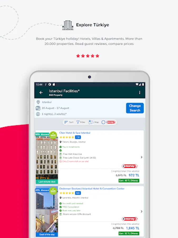Otelz.com more than 20,000 contractual hotel is the largest online booking site in Turkey.
