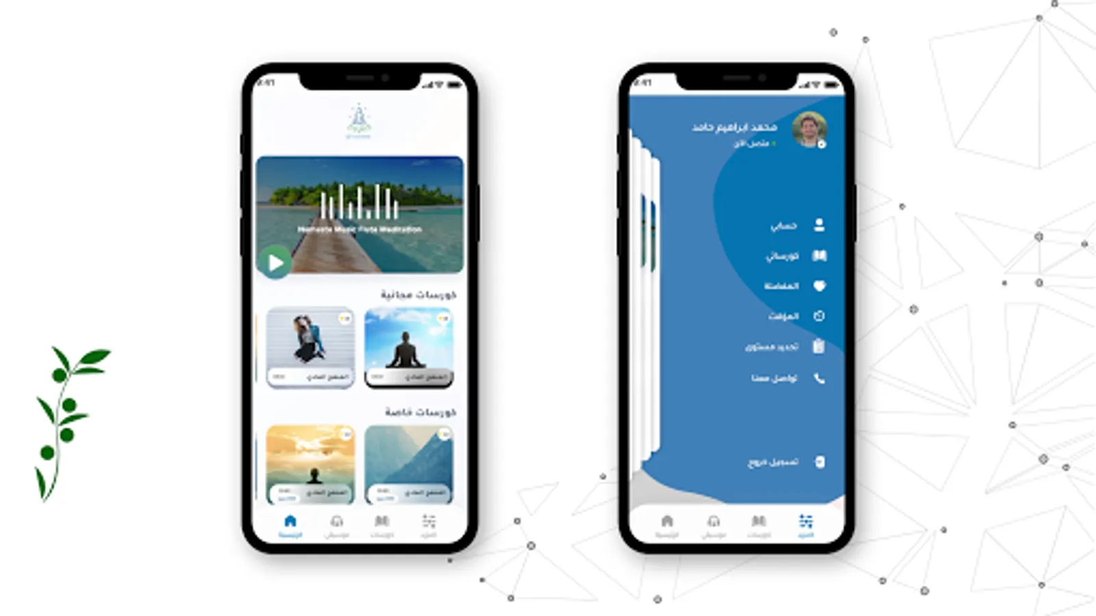 -الموسيقي: هناك موسيقي هادئة يمكن سماعها لو احتاج المود لذلك ولا تحتاج ان يكون المستخدم مسجل علي الآب
