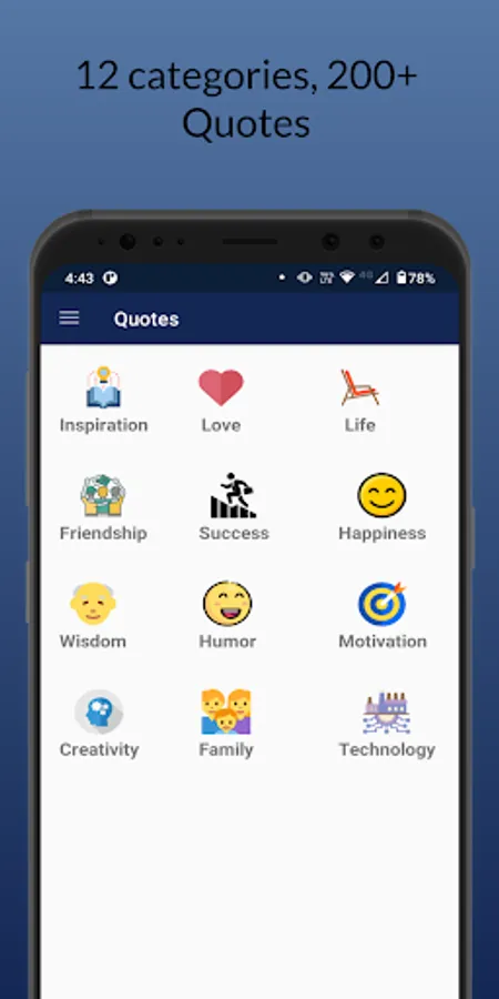 Welcome to Qbundle, your gateway to a world of inspiration and wisdom! With our app, you can access a treasure trove of over 200 quotes spanning 12 captivating categories. Whether you're seeking motivation, love, or life advice, we've got you covered.