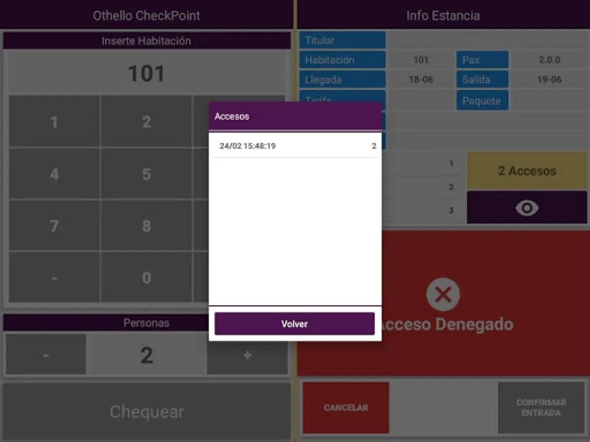 With Othello CheckPoint, you manage access control to the different hotel services. (Requires the previous installation of the Othello® .Net Server developed by Millenium Soft S.A.)