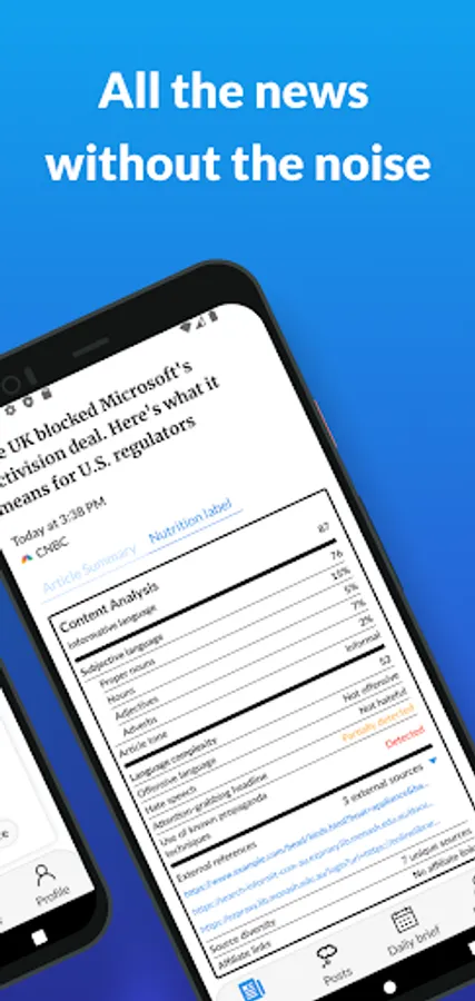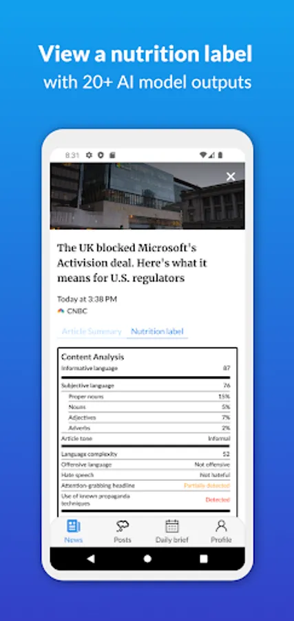 Our food comes with nutrition labels. Shouldn’t our news have them too? Well, now it does. Every article comes with a detailed nutrition label that helps you decide whether something is worth consuming -- before you consume it.