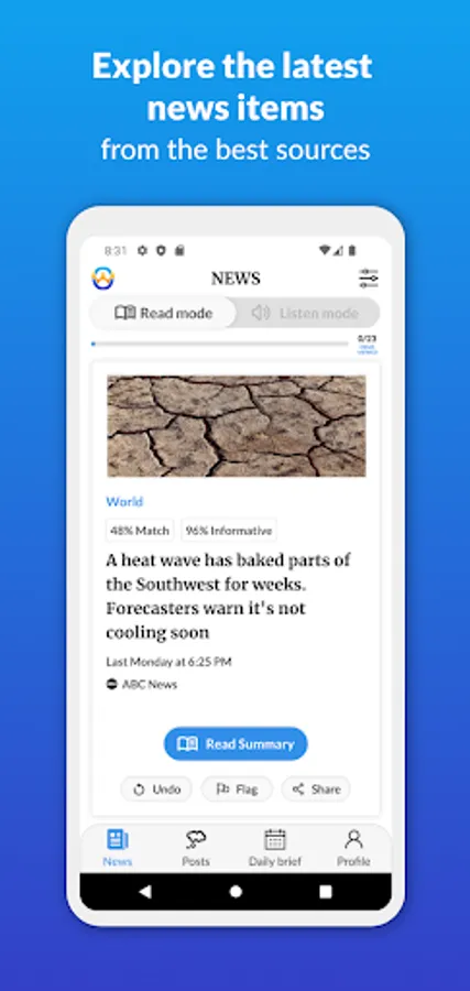 Stay informed with the latest news from hundreds of trustworthy sources -- with no noise, junk, ads, or clickbait.