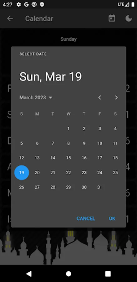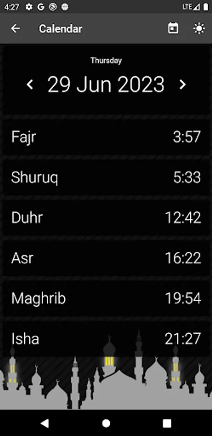 • Check prayer times for other days on the calendar page