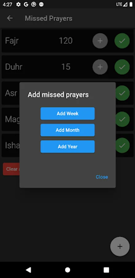 • Track a record of missed prayers
