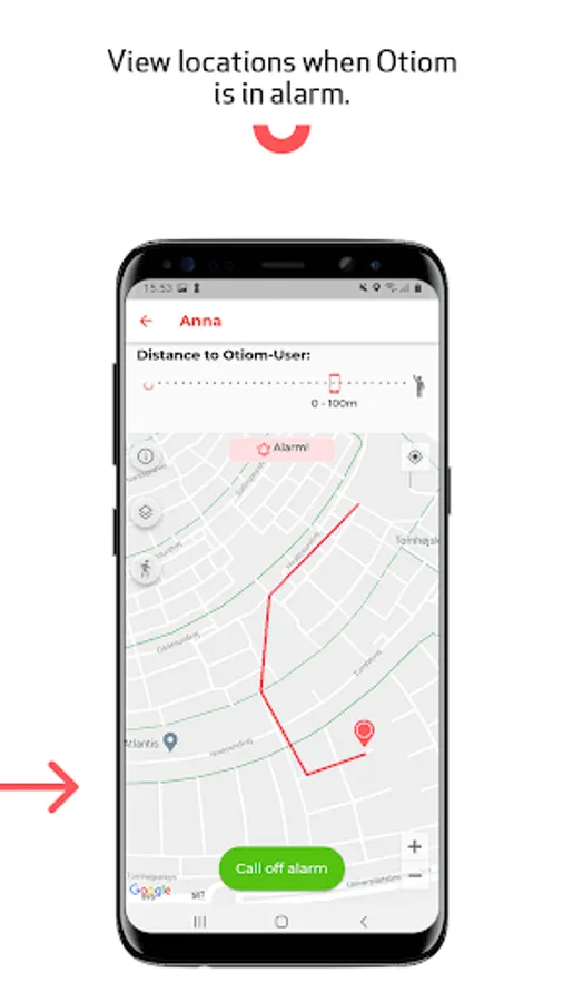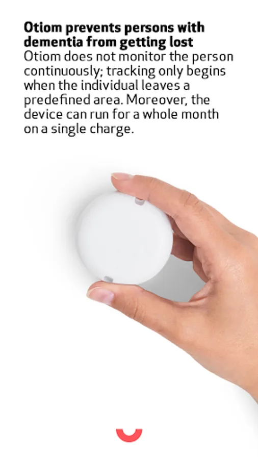 Otiom enables a quick and precise localization/tracking of persons with dementia. With the Otiom-system is it possible to find a person when they wander too far off from where they usually travel. In the Otiom-app is it possible to create individual safety zones, which is a specific geographic area, and a time frame of how long the user can travel outside before they are missed. If the safety zone or the time allowance is overstepped, a list of helpers is alerted, and they can help find the missing person.