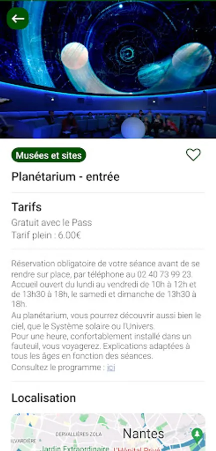 The Pass Nantes application allows its user to consult the list of Pass Nantes sites and for each of them to obtain detailed information. Thus he has an interactive digital tourist guide to accompany him during his stay in Nantes.