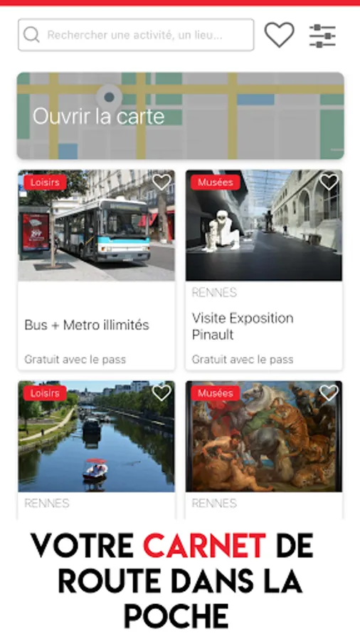 Visualize at a glance all the activities around you with: A quick description of the activity, photos, address, conditions to access it, its position on the map of Rennes ... And thanks to geolocation, find all the activities around you in seconds!
