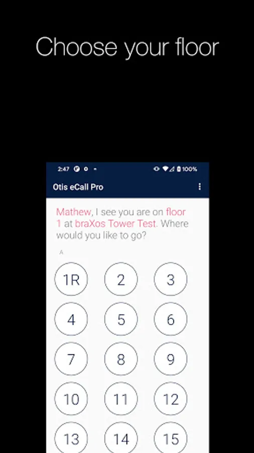 touching anything outside or inside the cab! Receive an elevator assignment on your phone once the call is made.