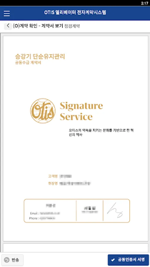 Confirm various contracts with OTIS and sign the contract by electronically signing the contract.