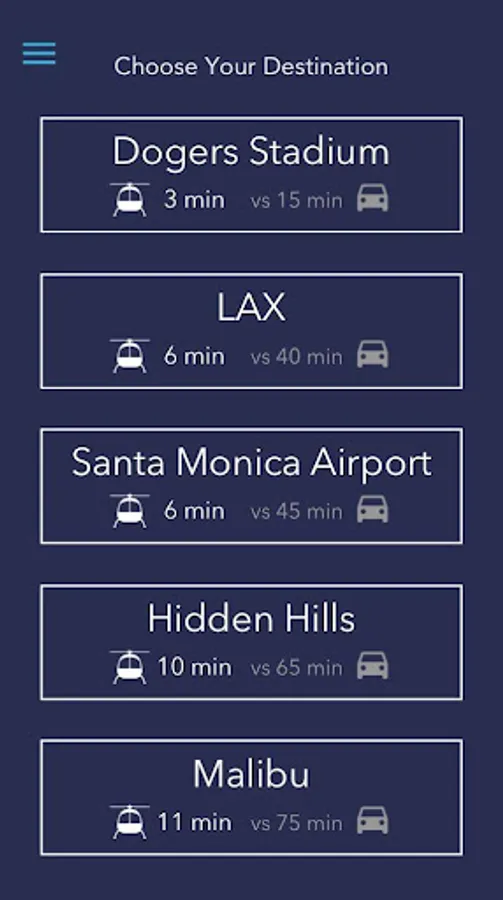 Experience an origin-to-destination future mobility solution that utilizes new technology to circumvent increasing ground transportation congestion. Simply decide on the end point, and let the app streamline your journey.