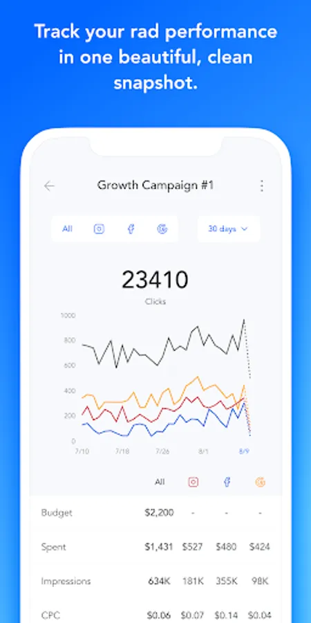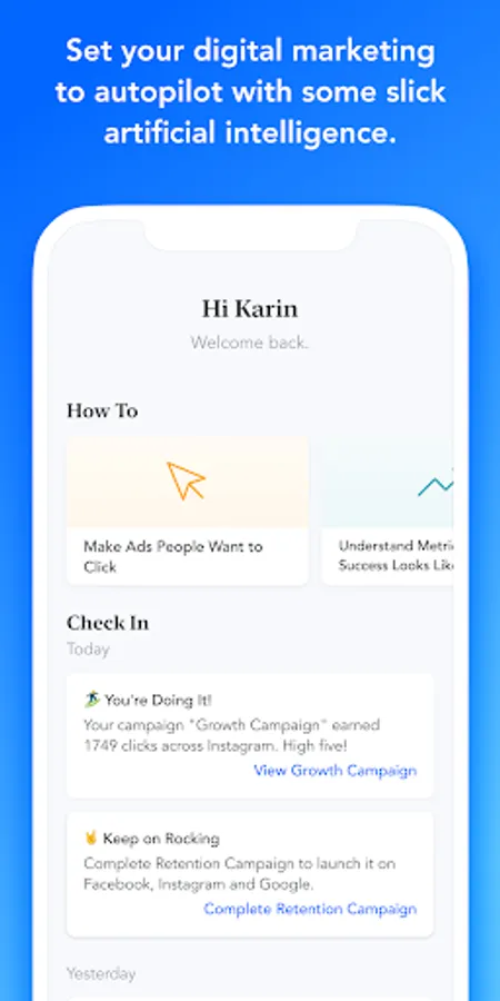 Once you create your campaign, you choose whether to post it on Facebook, Instagram and Google. Otis will then automatically choose the settings that are most optimal for your campaign, and automatically optimize it while it’s running. You will be able to see live results from each platform in the app. You can pause or edit your campaign at any time. You don’t need to commit a specific budget.