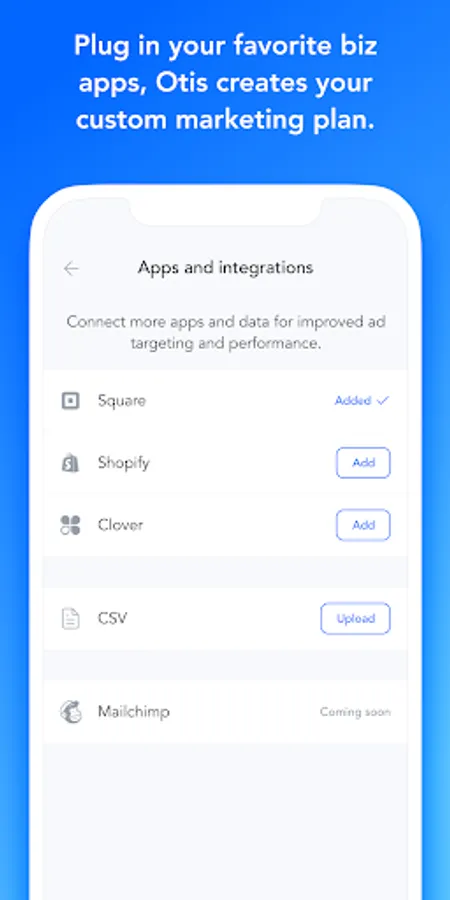 Otis connects your data sources such as your POS or email list to help you reach both new and existing customers online.