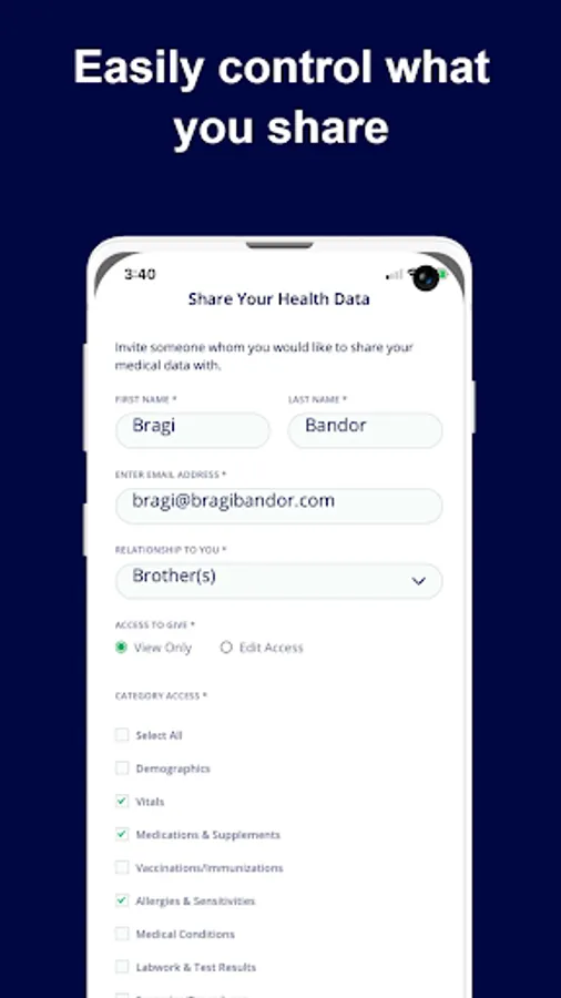 You may grant your emergency contacts and family access to your health profile and they can truly be there for you in an emergency.