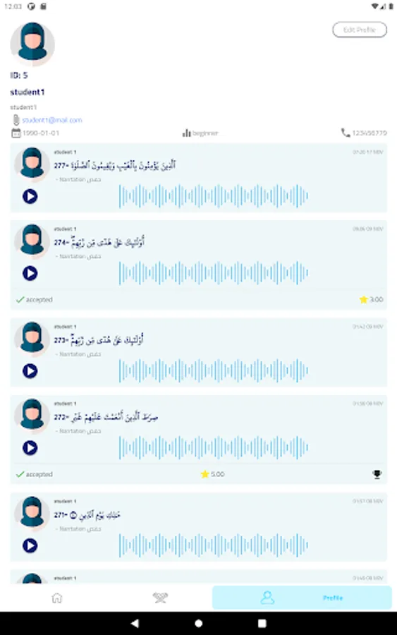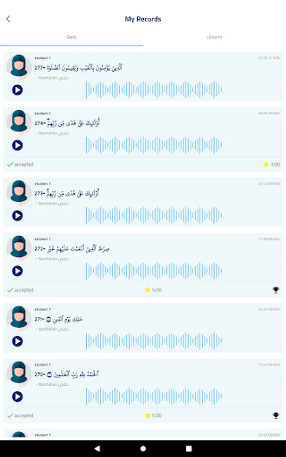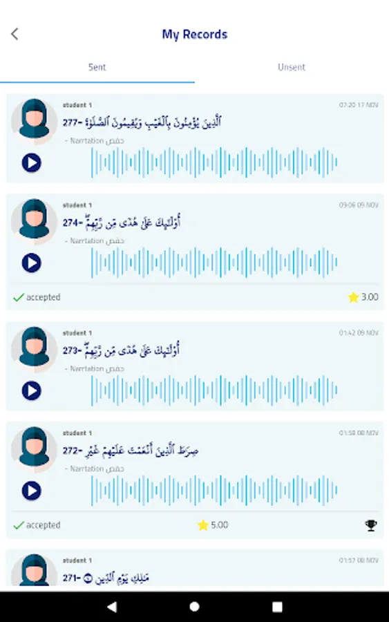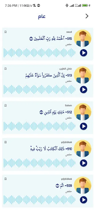 • Recording and saving a complete Qur'an with the user's voice
