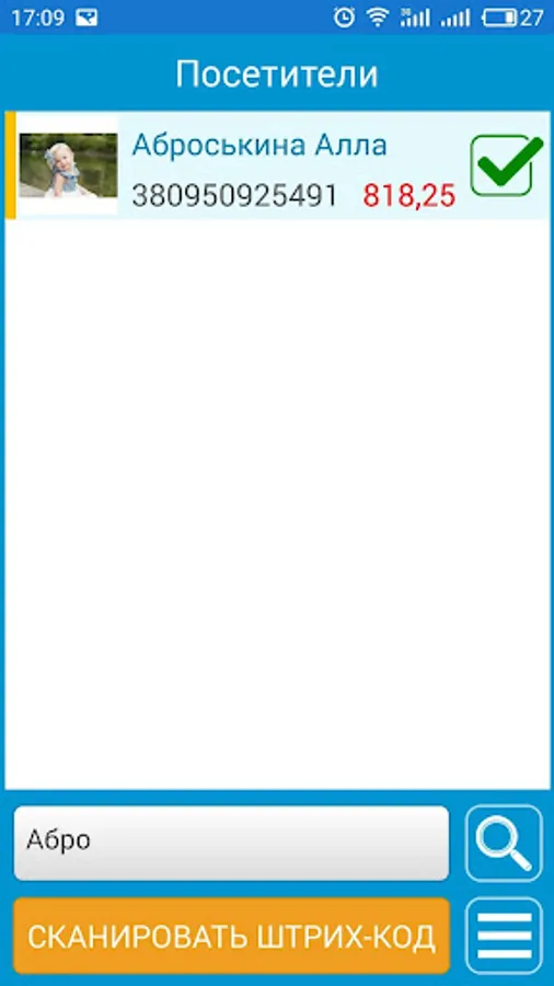 The application can be used by personnel not bound to the location of the club, to locate and mark the visitor his visit. For example, coaches in swimming pools, gyms.