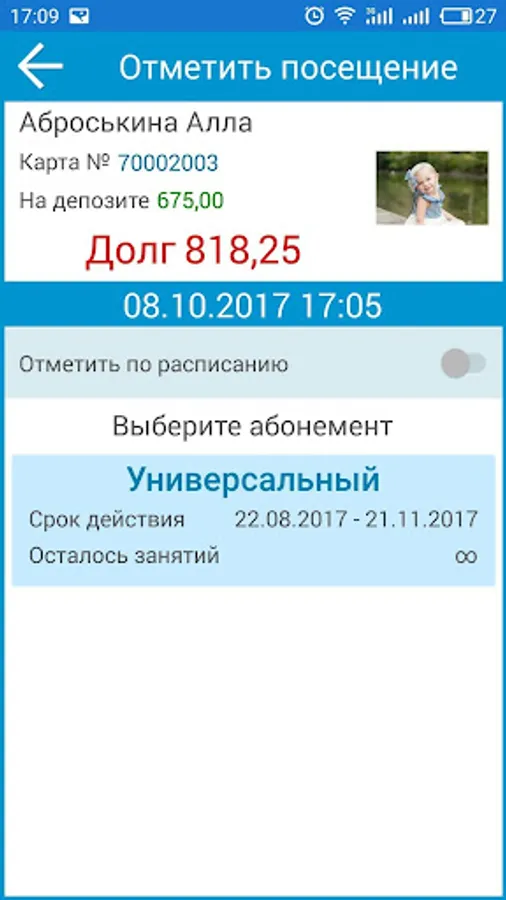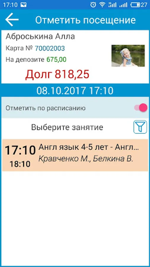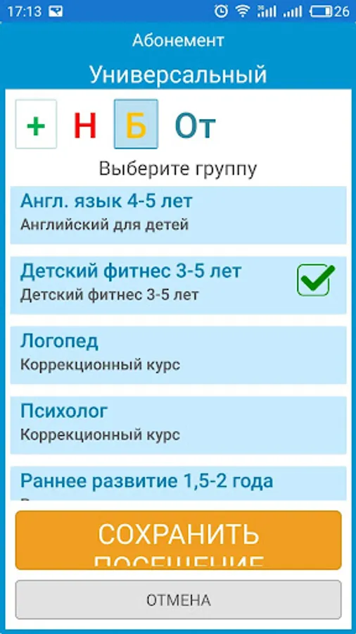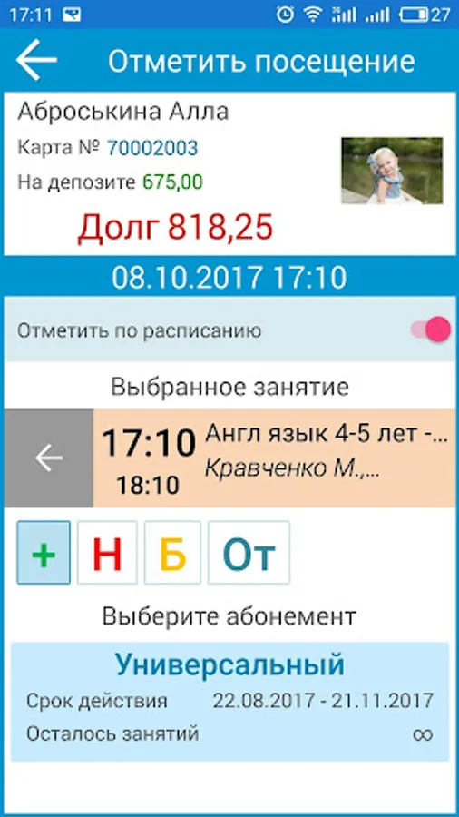Mobile application from the cloud-based CRM system to automate Otmechalka sports, dance and children's educational clubs, language and computer courses, yoga studios and family centers.
