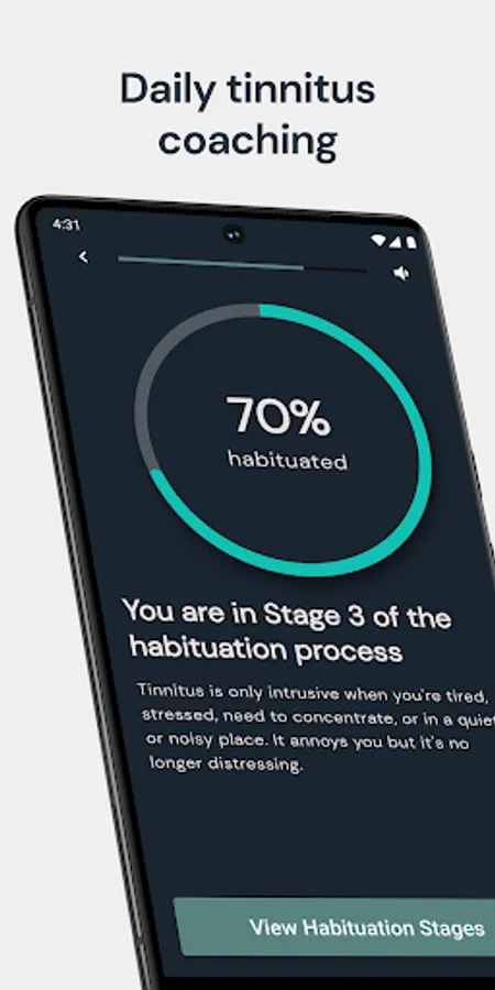 First, Oto will assess your tinnitus stage to then recommend a personalised 'habituation' plan for you. Habituation is when your brain no longer reacts negatively to tinnitus, so that you stop noticing it. Whatever your stage, we can help reduce the impact of your tinnitus.