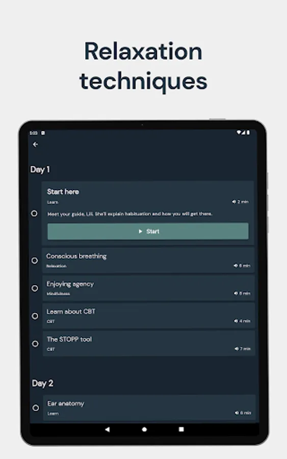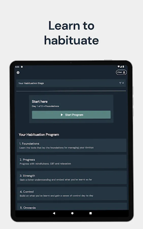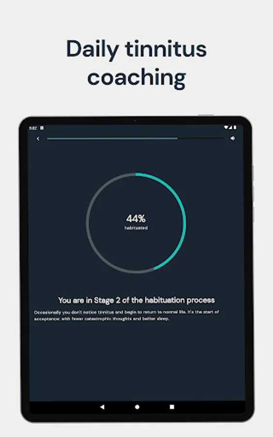 Oto will provide you with guidance and daily digital coaching sessions, you will learn habituation - a step-by-step process where you discover how to tune out tinnitus and develop coping mechanisms to help you manage your tinnitus and over time you’ll become less and less aware of it so eventually you can forget it’s even there.