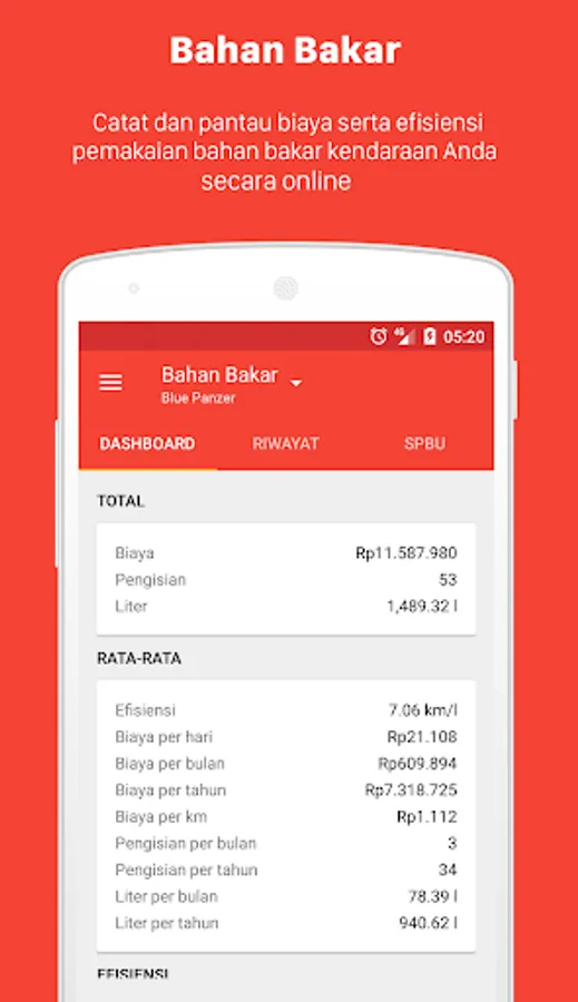 You can record the history of the service (service record), a history of refueling as well as expenses associated with your vehicle such as insurance, vehicle tax, parking etc.