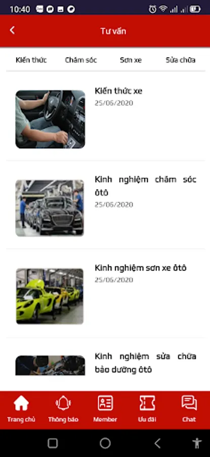 The app is used to service customers, import and repair cars, and service garages htcarspa