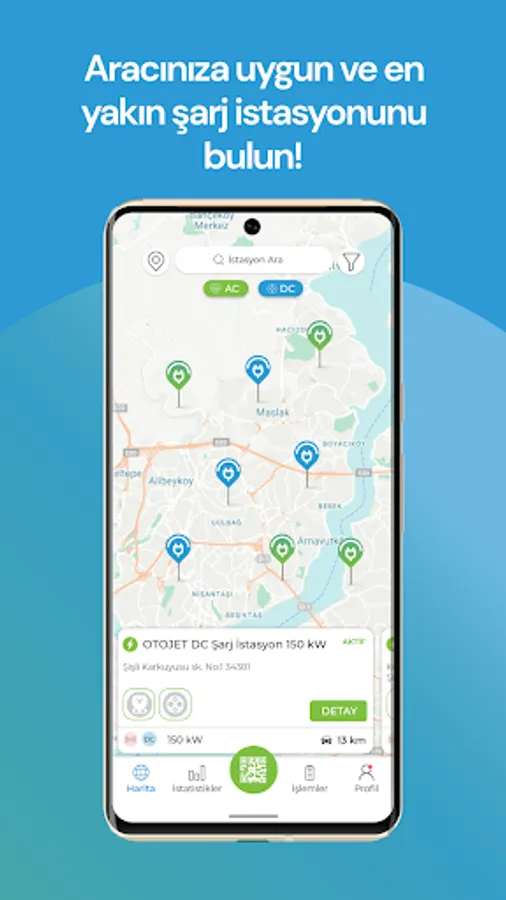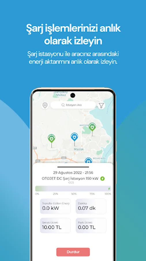 The OTOJET - Electric Vehicle Charging Station Network application facilitates the journey of electric vehicle users at every point they need, providing access to nearby stations, services at stations, the model and socket type of devices, the distances of the stations according to their location by filtering their charging compatibility, and access to navigation directions. It offers you the average charging capacity of your vehicle by adding a vehicle model and easy payment methods with the credit cards you will add during the charging process.